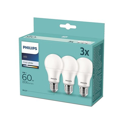 1 kép Philips LED 9-60W, E27, 4000K, 3 db