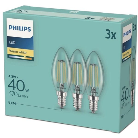 1 kép Philips LED classic 4,3-40W, E14 2700K, 3 db