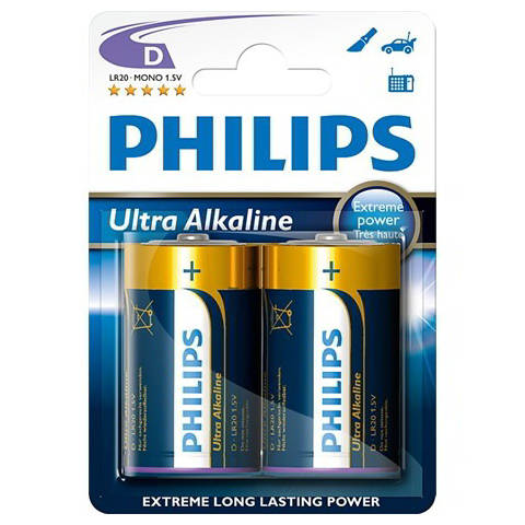 1 kép    Philips LR20E2B/10 - 2 db alkáli elem D ULTRA ALKALINE 1,5V