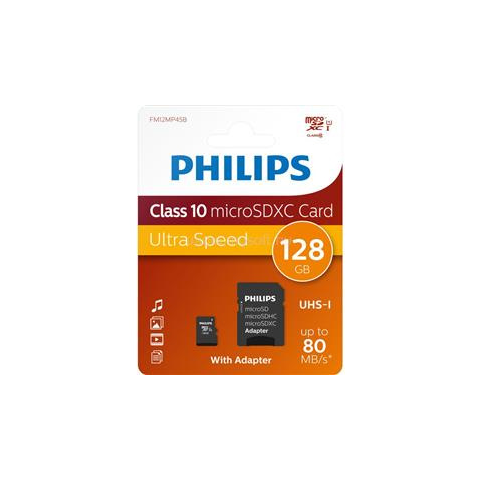 1 kép    Philips Micro SDXC Memóriakártya 128GB Class 10 UHS-I U1 Adapter (PH666998)