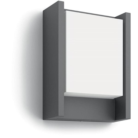 Fali lámpa - LED-es, 6 W teljesítmény, 600 lm fényáram, meleg fényű (2700 K), 22,1 cm magas, 16,6 cm széles, anyaga: fém és műanyag, IP44 védelem Philips Philips myGarden Arbor 16460/93/16 Philips Kerti falvilágítás Antracit alumínium alumínium alumínium kültéri fény, fehér színű, szétszórt fény formájában.Tökéletesen megvilágított kertet élvez