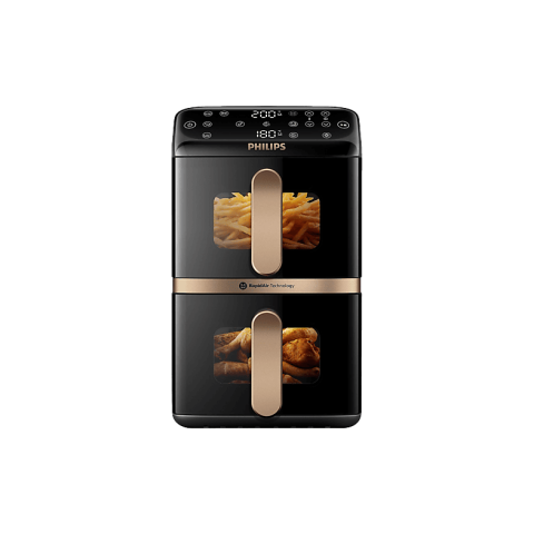 Features:Frying function: YesCapacity: 10 LAdjustable thermostat: YesProduct type: Hot air fryerTemperature (min): 40 °CTemperature (max): 200 °CDigital timer: YesGrilling: YesBaking function: YesLow-fat frying technology: Rapid AirNumber of programs: 6Roasting function: YesFryer food capacity: 1.4 kgDesign:Cord length: 1 mControl type: TouchRemovable bowl: YesConstruction type: DoubleEasy to clean: YesOn/off switch: YesNon-slip feet: YesMaterial: Plastic, MetalDishwasher-proof parts: YesProdu