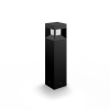 A fekete Philips Parterre LED kültéri talapzatos lámpánál egy fénykocka függeszkedik egy tartós, fröccsöntött alumíniumból készült tartóegység belsejében. Az ötletes forma szórt, melegfehér fénysugarakkal ragyogja be a járdákat és a kinti nyílt tereke