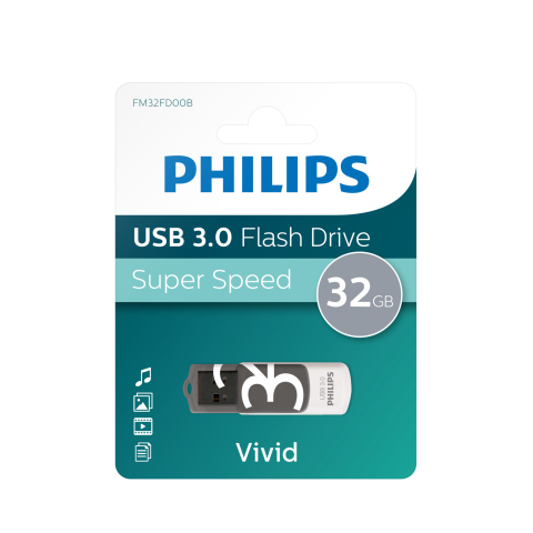 A (multimédia) fájlok tárolásakor az adatátviteli sebesség egyre fontosabbá válik. A Philips Vivid Series USB 3.0 pednrive-ok megnövelhetik az adatátviteli sebességet, ha USB 3.0 porttal együtt használják. Nagy sebességű USB 3.0 (kompatibilis az USB