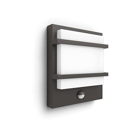 Fali lámpa - LED-es, 12 W teljesítmény, 1200 lm fényáram, meleg fényű (2700 K), 22,71 cm magas, 19,01 cm széles, anyaga: fém és műanyag, IP44 védelem Philips Petronia PIR 17395/93/P0 fali lámpaModern világítás a kertedhez és a homlokzathozA modern antracit színű Philips Petronia PIR 17395/93/P0 fali lámpa ötvözi az elegáns dizájnt és okos funkcióka