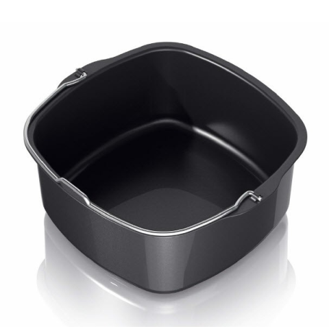 HD9925/00 sütőedény Philips alacsony zsírfelhasználású olajsütőhöz, / Többfunkciós főzőkészülékhez. 1,6 liter, Méret: L 174 mm x B 164 mm x H 70 mm (fogó nélkl) H 78 mm (fogóval) A kiegészítő sütőtálcával ) süteményt és lepényt süthet, és kényelmesebben k