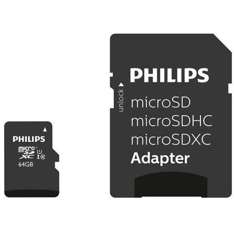 PHILIPS 64GB MicroSDHC memóriakártya adapterrel.