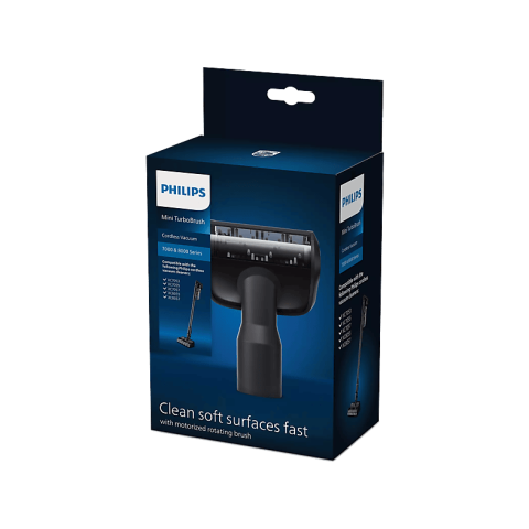 A mini turbókefe ideális az állatszőrök kárpitról, székekről és szőnyegekről való eltávolításához. Kompakt, és a motoros kefének köszönhetően nagy teljesítményű és hatékony. Kompatibilis a Philips 7000 és 8000 Series (Xc7053, Xc7055, Xc7057, Xc8055, Xc8057) vezeték nélküli porszívókkal.