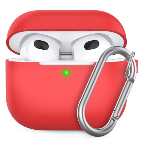 1 kép Phoner Simple Apple Airpods 3 szilikon tok akasztóval, piros