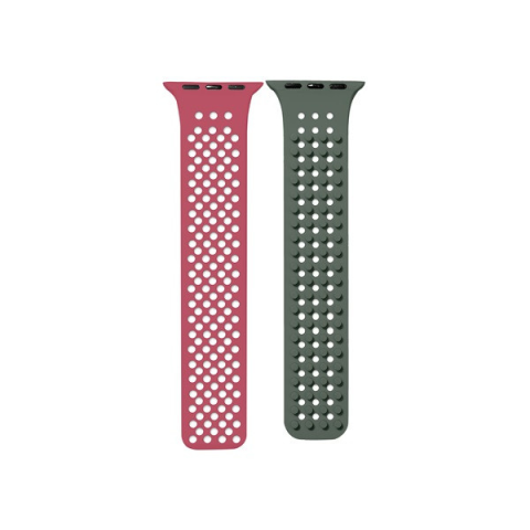 1 kép Phoner Spike Apple Watch szilikon szíj, 49/45/44/42mm, rószaszín/zöld