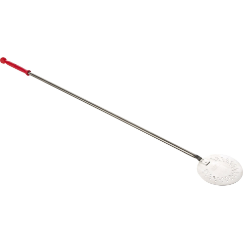 Piazza pizzalapát kerek, perforált fejjel. Ez a rozsdamentes acélból készült pizzalapát piros nyéllel rendelkezik. Méretek: hossza 174 mm, átmérője 240 mm. Ideális pizzakészítéshez.