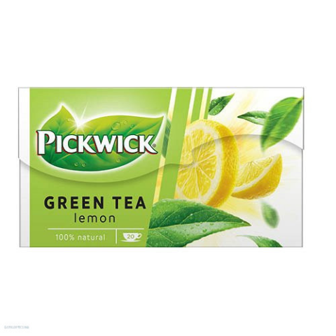 A Pickwick zöld teája valódi citrommal erősen karakteres élénk színnel bír. E teakeverék az üdítő citrom íz és a zöld tea kombinációja. A Pickwick zöld tea remek kiegészítője az egészséges életmódnak. Összetevők: Zöld tea, Indiai citromfű, Aroma, Citro
