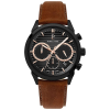 Karóra férfiaknak - analóg idő megjelenítés, óramű típusa quartz, kerek számlap, kronográf, elegáns, számozás nélküli, ásványi számlap, 50 m (5 ATM) vízhatlanság, a tok anyaga acél, a tok színe fekete, a szíj anyaga bőr, a szíj színe barna, cserélhető szíjjal