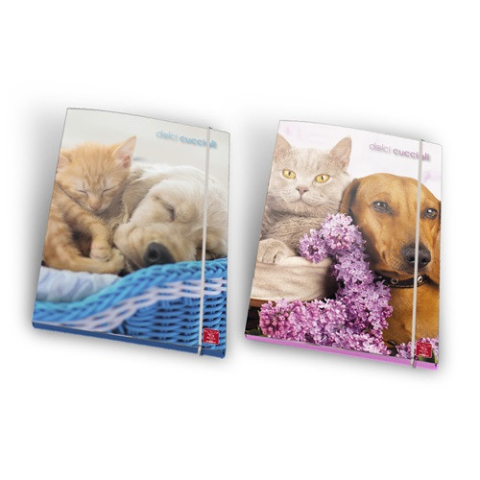 Gumis mappa karton Pigna Dolci Cuccioli A/4 Méret: 26x34,5 cm 3 pólyás Hosszabbik oldalán erős zárógumival 1,2 cm gerincvastagság 2 féle mintával (a minta nem választható)