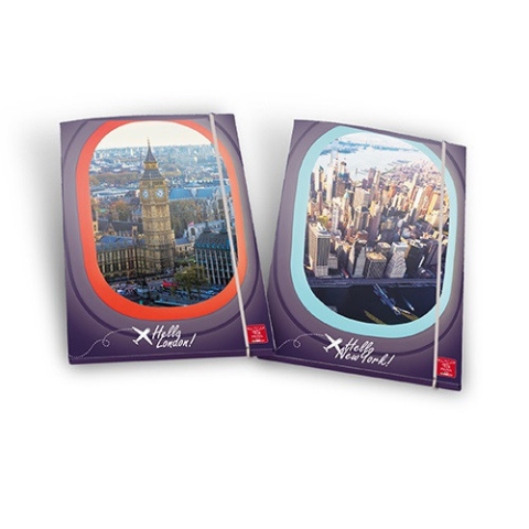 Gumis mappa Pigna Hello Travel A/4 Méret: A/43 pólyás, gumiszalaggal ellátott1,2 cm gerincvastagságMéret: 26x35,5 cm