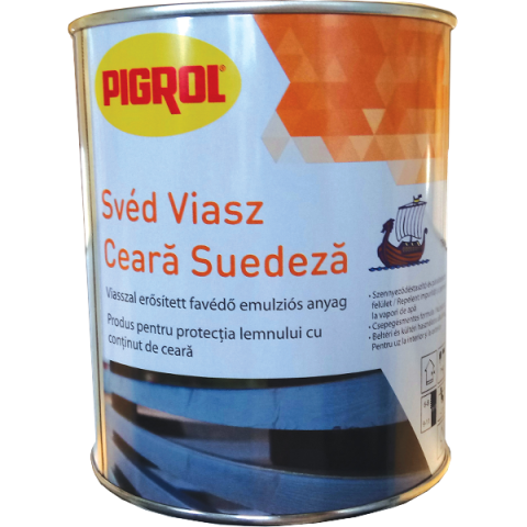 Pigrol svéd viasz színtelen 750 ml - Tixotróp jellegű vízhígítású faviasz kültéri és beltéri használatra - Gyorsan szárad, szagtalan - Fa felületeket vízhatlanná, a szennyeződésekkel és az időjárás hatásaival szemben ellenállóvá teszi - Nyál- és izzadságellenálló - Felhordása: ecsettel, hengerrel, festékszóróval - kiadósság: 10-12nm/liter