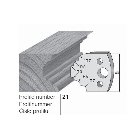 PILANA profilkés és fogásvastagsághatároló (FLURY) Profilkés szélesség 40 mm, vastagság 4 mm. Kések anyaga szerszámacél, SP. Puhafához használható.Fogásvastagsághatároló anyaga acél. A fogásvastagsághatároló vastagsága 0,8 mm-rel kisebb a profilkésnél.