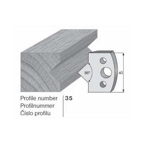 PILANA profilkés és fogásvastagsághatároló (FLURY) Profilkés szélesség 40 mm, vastagság 4 mm. Kések anyaga szerszámacél, SP. Puhafához használható.Fogásvastagsághatároló anyaga acél. A fogásvastagsághatároló vastagsága 0,8 mm-rel kisebb a profilkésnél.