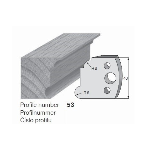 PILANA profilkés és fogásvastagsághatároló (FLURY) Profilkés szélesség 40 mm, vastagság 4 mm. Kések anyaga szerszámacél, SP. Puhafához használható.Fogásvastagsághatároló anyaga acél. A fogásvastagsághatároló vastagsága 0,8 mm-rel kisebb a profilkésnél.