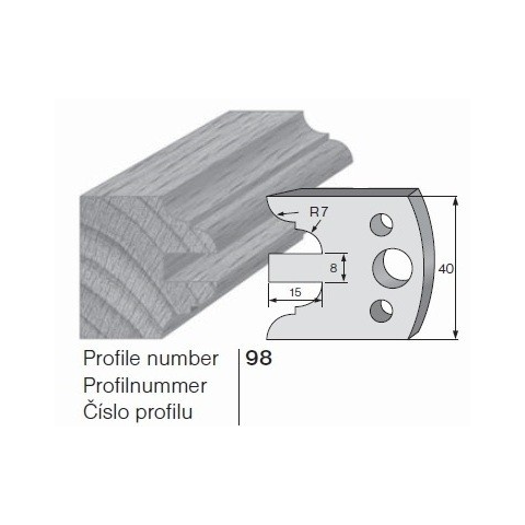 PILANA profilkés és fogásvastagsághatároló (FLURY) Profilkés szélesség 40 mm, vastagság 4 mm. Kések anyaga szerszámacél, SP. Puhafához használható.Fogásvastagsághatároló anyaga acél. A fogásvastagsághatároló vastagsága 0,8 mm-rel kisebb a profilkésnél.