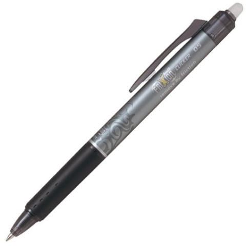 Radírozható toll - roller, jobb- és balkezesek számára, nyomógombos mechanizmus, fekete töltet, hegy vastagsága 5 mm, vonalvastagság 0,25 mm, anyaga műanyag A kiváló PILOT FriXion Clicker 05 / 0,25 mm, fekete radírozható toll alapvető tulajdonságai A praktikus PILOT radírozható toll jobb- és balkezesek számára is megfelelő Nyomógombos verzió Radírozható t