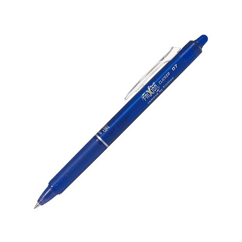 Radírozható toll - roller nyomógombos mechanizmus, kék töltet, hegy vastagsága 0,7 mm, vonalvastagság 0,35 mm, anyaga műanyag, 3 toll a csomagban A remek PILOT FriXion Clicker 07 / 0,35 mm, kék - 3 darabos csomagban radírozható toll lényeges paraméterei Nyomógombos kivitel Radírozható tintával ellátott betét Kék színű töltet 0,7 mm széles hegy