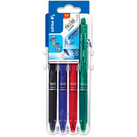 Radírozható toll - roller, jobb- és balkezesek számára, nyomógombos mechanizmus, fekete, kék, vörös és zöld töltet, zselés tinta, hegy vastagsága 0,7 mm, vonalvastagság 0,35 mm, anyaga műanyag, díszdoboz és 4 toll a csomagban A kiváló PILOT FriXion Clicker 07 / 0,35 mm, Set2Go BASIC radírozható toll legfontosabb paraméterei A hasznos PILOT radírozható toll jobb- és balkezesek számára egyaránt alkalmas Nyomógombos verzió Zs