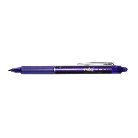 PILOT Frixion Clicker innovatív és divatos kialakítású rollertoll egyedülálló, hőérzékeny tintával, nyomógombos kivitelben. A leírt szöveg a toll végén található gumival való dörzsölés hatására eltűnik, majd korlátlan alkalommal újraírható és újra kitörölhető. Erős wolfram-karbid heggyel és gumimarkolattal a kényelmes írásért. Írásvastagság: 0.35 mm. Használata nem ajánlott szerződések, iskolai naplók, bizonyítványok illetve bármilyen hivatalos