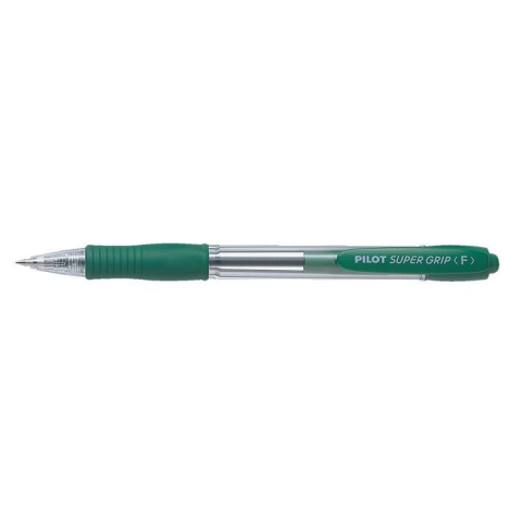 Golyóstoll, 0,22 mm, nyomógombos, PILOT Super Grip, zöld - átlátszó test - olajbázisú tinta - látható tintamennyiség - wolfram-karbid ötvözetű golyó - gumírozott markolat - cserélhető betét: PGB* - vonalvastagság: 0,22 mm - golyóátmérő: 0,7 mm