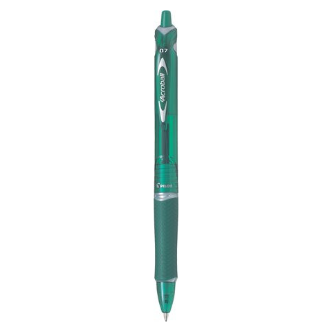 Golyóstoll, 0,25 mm, nyomógombos, PILOT Acroball, zöld - nyomógombos tollszerkezet - gumírozott markolat - az álátszó tolltestnek köszönhetően jól látható a tinta mennyisége - újfajta olajbázisú tinta, mely különösen könnyed írást tesz lehetővé - 78%-b