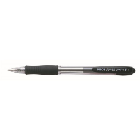 Golyóstoll Pilot Super Grip 0.35 mm fekete BPGP-10R-F * nyomógombos golyóstoll, gumírozott fogórésszel * ergonomikus kialakítás, a kényelmes írásért * a tolltest színével megegyező tinta * vonalvastagság: 0,27 mm