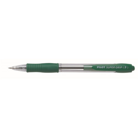 Golyóstoll Pilot Super Grip 0.35 mm zöld BPGP-10R-F * nyomógombos golyóstoll, gumírozott fogórésszel * ergonomikus kialakítás, a kényelmes írásért * a tolltest színével megegyező tinta * vonalvastagság: 0,27 mm