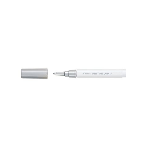 Marker - használható textil, porcelán és papír felületeken, akril, hegy formája kerek, 1,5 mm vonalvastagság, kerek markolat, A kedvelt Pilot Pintor Akril dekormarker, Fine, ezüst termék fontosabb előnyei A népszerű PILOT marker író- és művészkellék Kerek alak, hogy jó legyen kézben fogni Magas fokú fedés Használata: textil,