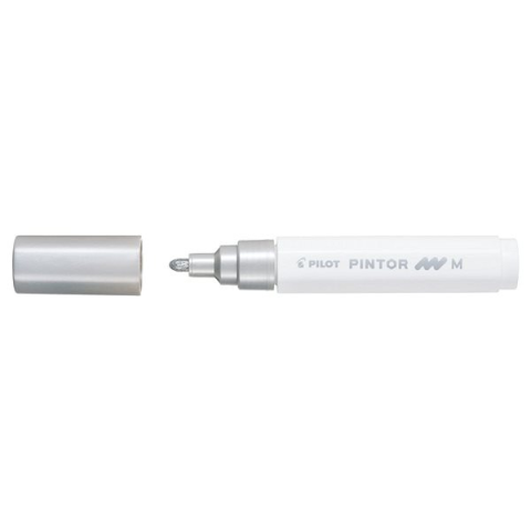 Marker - használható textil, porcelán és papír felületeken, akril, hegy formája kerek, 2,2 mm vonalvastagság, kerek markolat, A kedvelt Pilot Pintor Akril dekormarker, Medium, ezüst termék legfontosabb tulajdonságai A szuper PILOT szövegkiemelő író- és művészkellék Kerek alak a jó fogás érdekében Magas fedőképességgel rendel