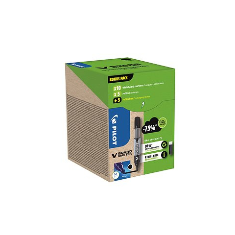 Marker - használható tábla felületeken, újratölthető, kiradírozható, hegy formája kerek, 2,3 mm vonalvastagság, kerek markolat, 10 darab a csomagban A közkedvelt PILOT V-Board Master fehér táblához Greenpack, fekete - 10 darab + 10x utántöltő, fekete termék legfontosabb jellemzői A közkedvelt PILOT szövegkiemelő nélkülözhetetlen, ha írni kell vagy
