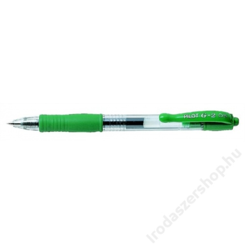 Zseléstoll, 0,25 mm, nyomógombos, PILOT G-2, zöld (PG2ZSZ) - nyomógombos zseléstoll - átlátszó test - gumírozott markolat - látható tintamennyiség - wolfram-karbid golyó - cserélhető betét: PG2ZSBZ - írásvastagság: 0,25 mm - golyóátmérő: 0,5 mm
