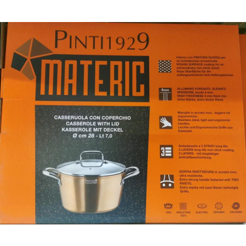 1 kép Pintinox Materic bevonatos-indukciós lábos+üvegfedő, rm.nyéllel, 28 cm