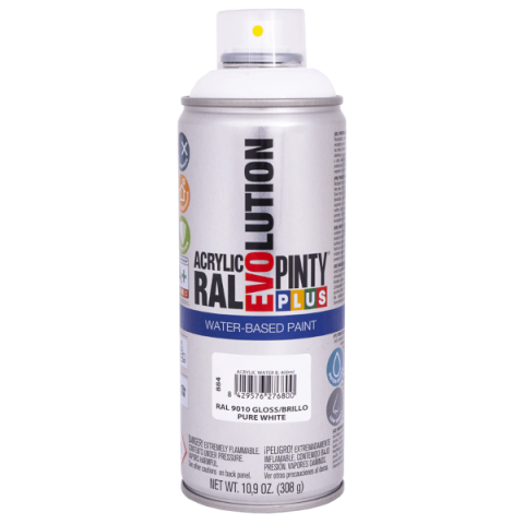 Vizes bázisú akril spray, minden káros oldószertől mentes. Szinte teljesen szagtalan, minden felületen alkalmazható.  Könnyen használható bármilyen felületen. Nagy ellenállású, hatékony védelmet nyújt a festett tárgyaknak a vizes bázisú PintyPlus Evolution festék spray. Az innovatív technológiának köszönhetően, minden felületen magas fokú tapadást és fedést biztosít.
