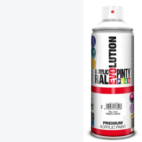 1 kép PintyPlus Akrilfesték spray, EVOLUTION fényes, 400 ml - RAL9016 traffic white