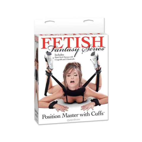 Pipedream Fetish Position Master - kötözőszett (fekete) bilincs, kötöző árgrafikon