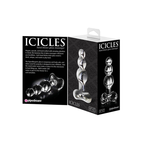 ICICLES NO 47.Erős, valódi üvegdildó.Extra erős és tartós, antiallergén és nagyon higiénikus - nagyon könnyen tisztítható.Felmelegíthető vagy lehűthető az érzések fokozásához.Vaginális és anális élményszerzésre is alkalmas.hossza(behelyezhető):9cmátmérő:1,5-3,7cm