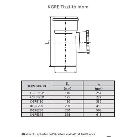 Pipelife Hungária Műanyagipari Kft. KG 125 csatorna tisztító idom