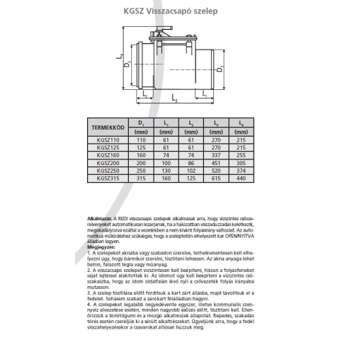 Pipelife Hungária Műanyagipari Kft. KG 125 csatorna visszacsapó szelep hűtés, fűtés szerelvény árgrafikon