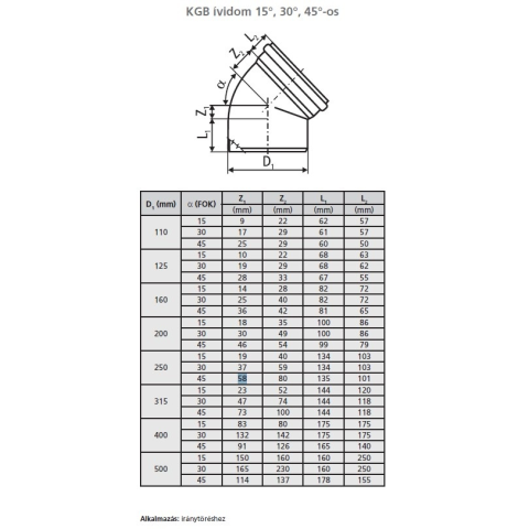 Pipelife Hungária Műanyagipari Kft. KG 250/30° csatorna ívidom hűtés, fűtés szerelvény árgrafikon
