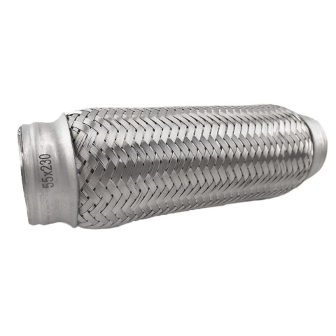 Flexibilis rezgéscsillapító cső 55X230 55 mm csőátmérő, 230 mm teljes hossz. Kiváló minőségű kipufogó rezgéscsillapító cső, rezonátor cső, kipufogó flexibilis cső többféle méretben. Rugalmas kapcsolatot biztosít a kipufogódob és a motor között. Hibátla
