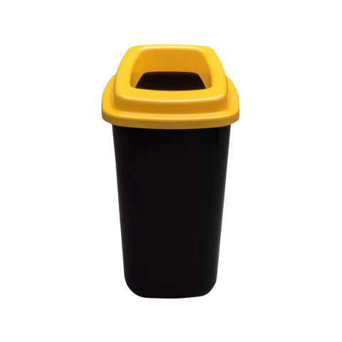 Praktikus, 28 literes szelektív hulladékgyűjtő fekete színben, sárga tetővel. Nyitott tetejével könnyű a hulladék eltávolítása. Ideális konyhákba és közösségi terekbe. Plafor Sort szelektív hulladékgyűjtő, 28L – Szelektálj stílusosan! Ez a 28 literes s