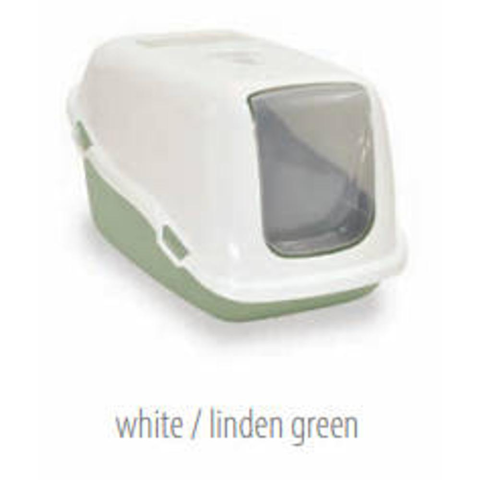 Plana Ella - Fedeles, szénszűrő betétes macska WC (hársfazöld/fehér) 57x39x38cmMagas peremű alomtálca aktívszenes szűrővel és süllyesztett bejárattal.
