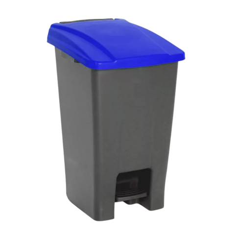 70 literes pedálos szelektív szemetes antracit testtel és kék tetővel, papírhulladék elkülönítésére. Pedálos szelektív hulladékgyűjtő szemetes Antracit-Kék 70L – Papírgyűjtés stílusosan Ez a 70 literes pedálos szemetes antracit testtel és kék tetővel i