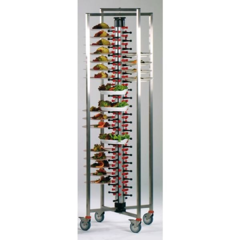 Professzionális PlateMate tányérszállító kocsi rozsdamentes acélból. Akár 84 tányér befogadására képes. 4 forgó kerékkel rendelkezik, amelyek közül 2 fékezhető a stabilitás és a könnyű kezelés érdekében. Ideális éttermek és catering szolgáltatók számára.