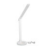 Elegáns fehér irodai asztali lámpa megvilágított RGB talppal, ideális modern irodába és diákszobába.   A lámpa karja összecsukható, fej és talp állítási lehetőséggel. Használhatja az asztallap felül...